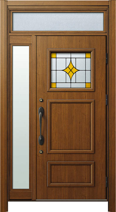 | 商品名 | かんたんドアリモ 玄関ドアD30 断熱ドア E02N・片袖FIX・木目・らんま有り |