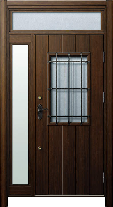 | 商品名 | かんたんドアリモ 玄関ドアD30 断熱ドア E12N・片袖FIX・木目・らんま有り |