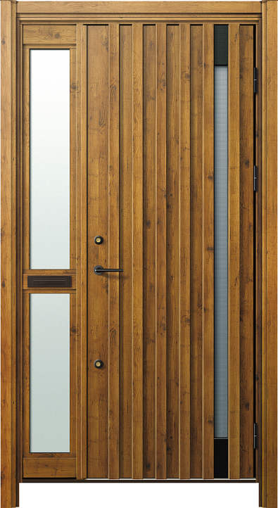 かんたんドアリモ 玄関ドアD30 断熱ドア N06K・片袖FIX(中桟ポスト付)・木目・らんま無し