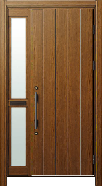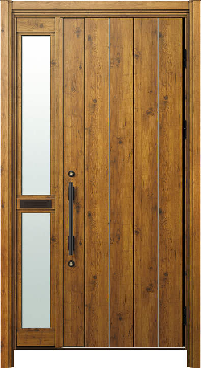 かんたんドアリモ 玄関ドアD30 断熱ドア N08N・片袖FIX(中桟ポスト付)・木目・らんま無し