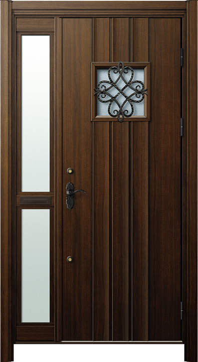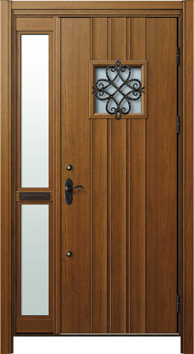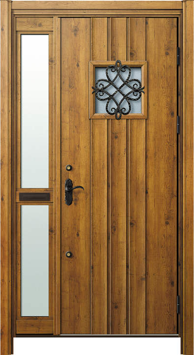 | 商品名 | かんたんドアリモ 玄関ドアD30 断熱ドア N12N・片袖FIX(中桟ポスト付)・木目・らんま無し |