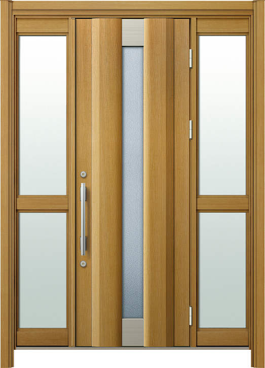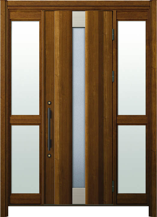かんたんドアリモ 玄関ドアD30 アルミドア S01・両袖FIX(中桟付)・木目・らんま無し