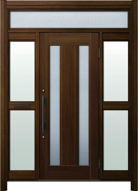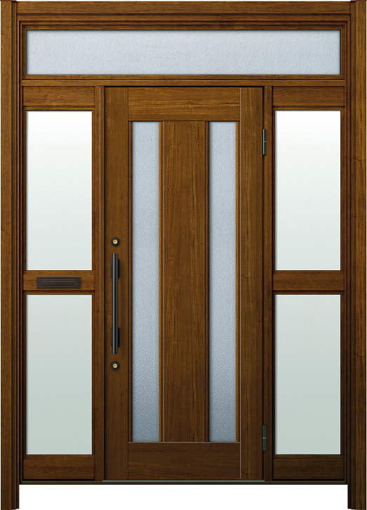 かんたんドアリモ 玄関ドアD30 アルミドア S02・両袖FIX(中桟ポスト付)・木目・らんま有り