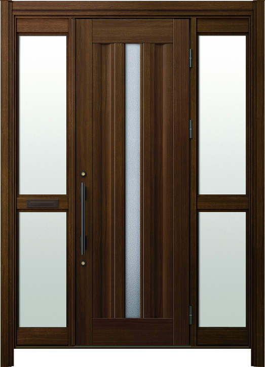 かんたんドアリモ 玄関ドアD30 アルミドア S03・両袖FIX(中桟ポスト付)・木目・らんま無し
