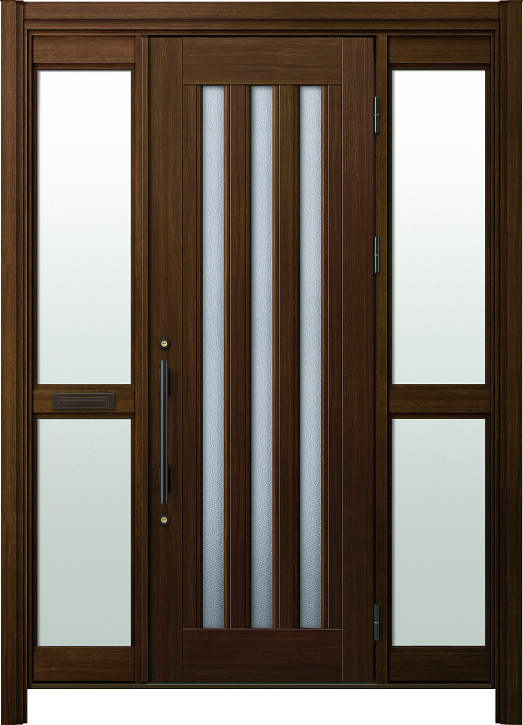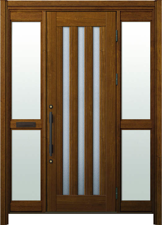 かんたんドアリモ 玄関ドアD30 アルミドア S05・両袖FIX(中桟ポスト付)・木目・らんま無し