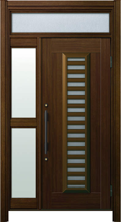かんたんドアリモ 玄関ドアD30 アルミドア S11・片袖FIX(中桟付)・木目・らんま有り
