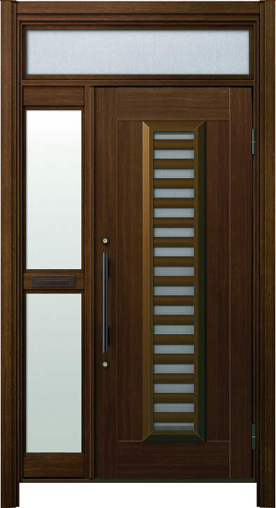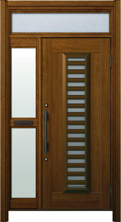 | 商品名 | かんたんドアリモ 玄関ドアD30 アルミドア S11・片袖FIX(中桟ポスト付)・木目・らんま有り |