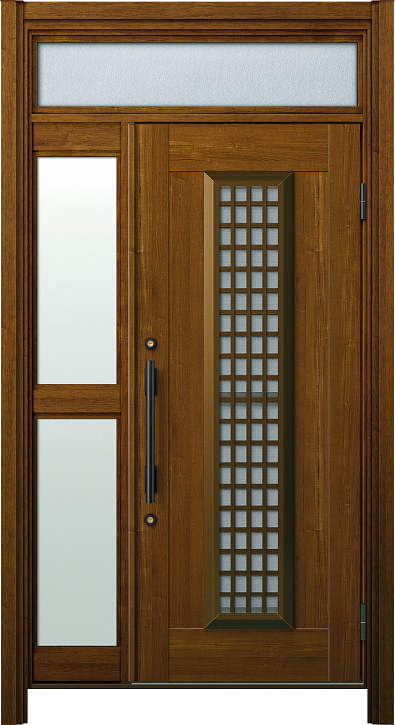 かんたんドアリモ 玄関ドアD30 アルミドア S12・片袖FIX(中桟付)・木目・らんま有り