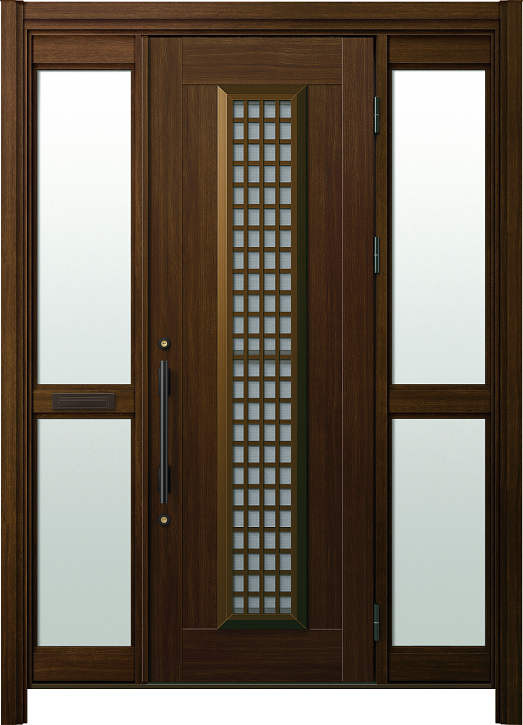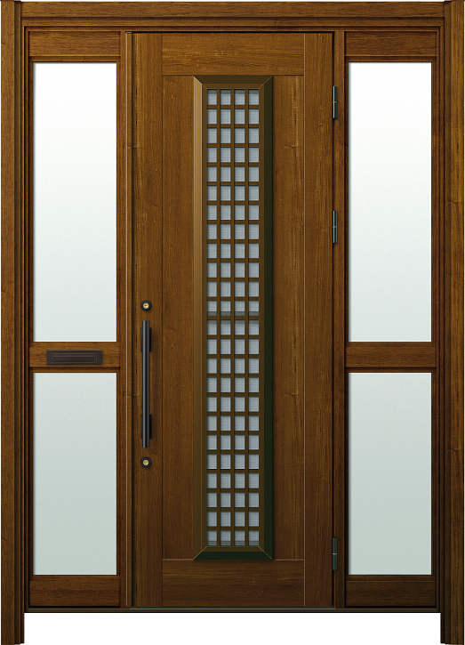 かんたんドアリモ 玄関ドアD30 アルミドア S12・両袖FIX(中桟ポスト付)・木目・らんま無し