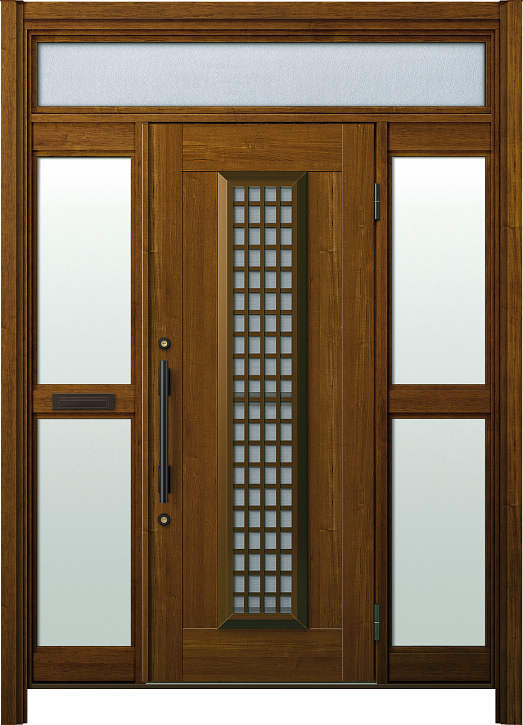 かんたんドアリモ 玄関ドアD30 アルミドア S12・両袖FIX(中桟ポスト付)・木目・らんま有り