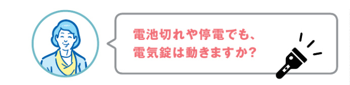 万が一の停電や電池切れの際も施錠開錠は可能です。
