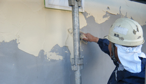 西洋漆喰は、天然無機質系の材料でできています。天然素材の塗り壁材は施工時の天候によって左右される欠点を持っています。冬場、雨天には塗り壁の乾燥(硬化)が遅い為に、施工面に白い縦の線が入る(白華現象)ことがあります。通常の乾燥ですと全く白華現象は現れません。